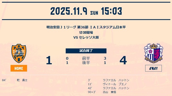 セレッソ戦:まあ0:3よりは1:4の方が良かったんじゃないか