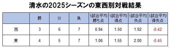 清水の東西別相性:大差はないが西の方がやや分が悪い